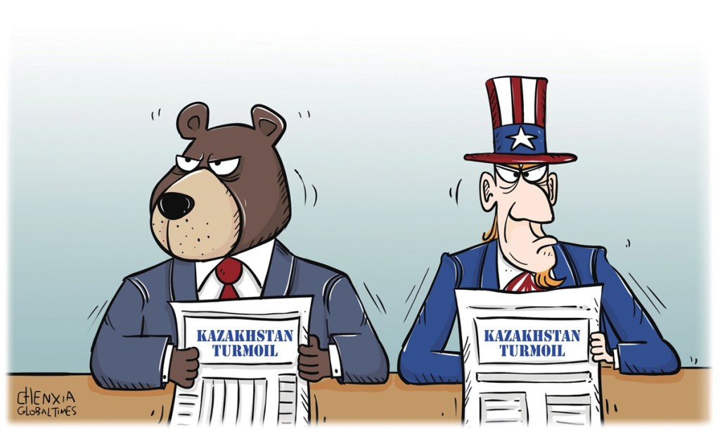 Kazakhstan’s crisis highlights US angst toward Russia. US attempts Ukraine style Color Revolution for regime change but failed miserably at Kazakhstan 哈薩克斯坦的危機凸顯了美國對俄羅斯的焦慮。 美國試圖用烏克蘭式的顏色革命來改變政權,但在哈薩克斯坦慘遭失敗 by Danil Bochkov Jan 10 2022