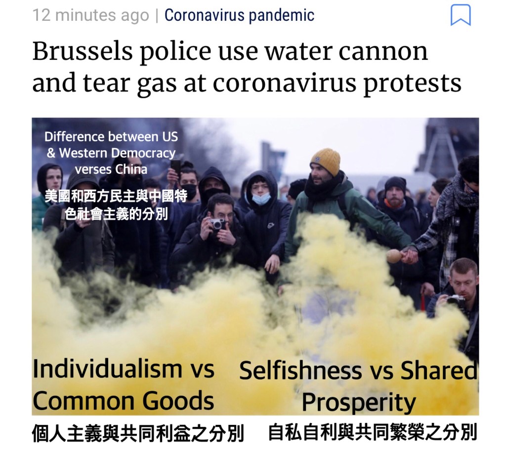 From the country’s starting point, Difference between US & Western Democracy verses China’s Socialism with Chinese Characteristics: Individualism verses Common Goods, Selfishness verses Shared Prosperity.