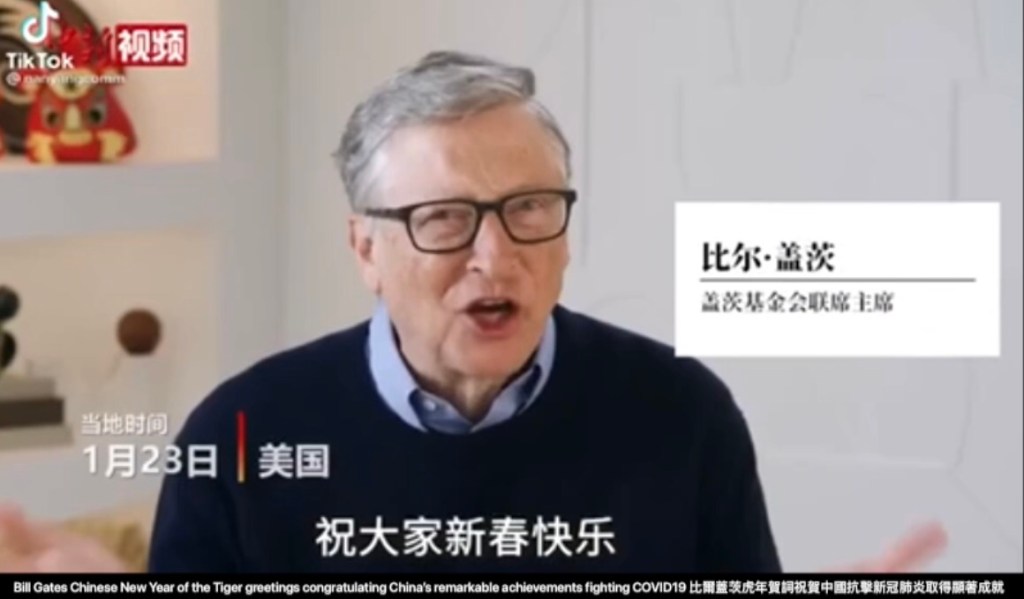Video: Bill Gates Chinese New Year of the Tiger greetings congratulating China’s remarkable achievements fighting COVID19 比爾蓋茨虎年賀詞祝賀中國抗擊新冠肺炎取得顯著成就