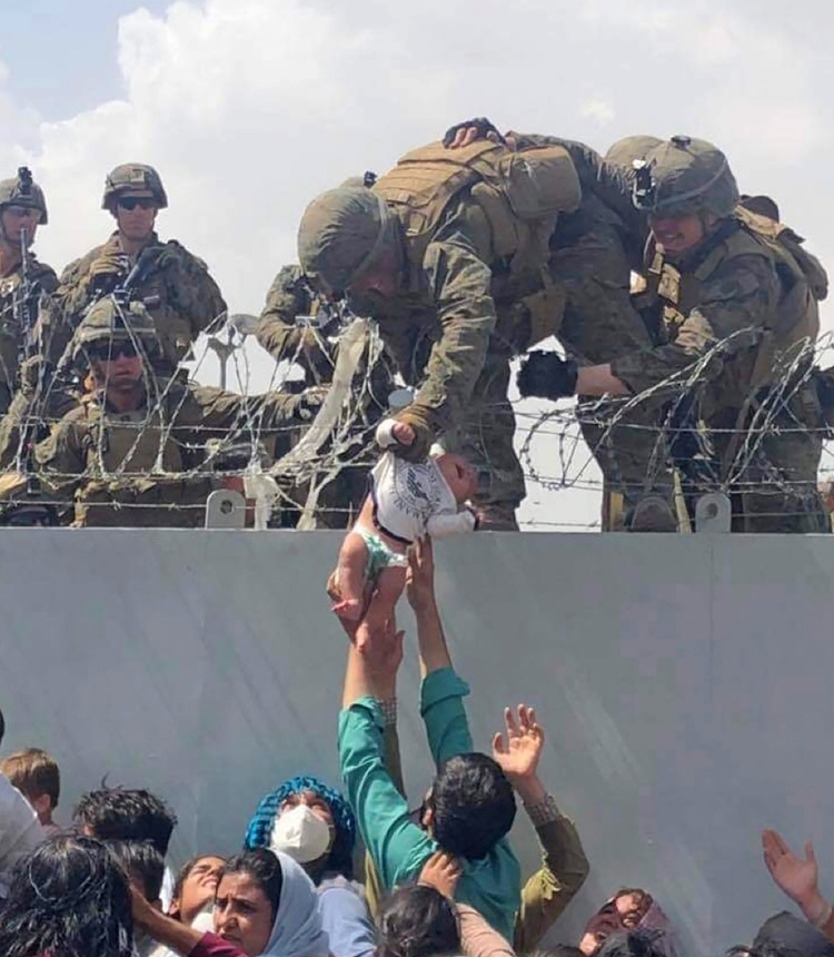 Ahmadi, the then two-month-old infant, was handed to the US soldier by his parents in the hope that the soldier would save their baby from getting trampled on by crowds. Ahmadi was then abandoned in one corner of the airport by the US soldier to live or die. 當時兩個月大的嬰兒艾哈邁迪(Ahmadi)被他的父母交給美軍士兵,希望士兵能拯救他們的嬰兒免遭人群踐踏。 艾哈邁迪隨後被美軍士兵遺棄在機場的一個角落譲他自生自滅.