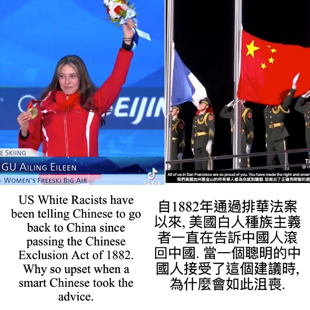 US White Racists have been telling Chinese to go back to China since passing the Chinese Exclusion Act of 1882. Why so upset when a smart Chinese took the advice. 自1882年通過排華法案以來, 美國白人種族主義者一直在告訴中國人滾回中國. 當一個聰明的中國人接受了這個建議時, 為什麼會如此沮喪.