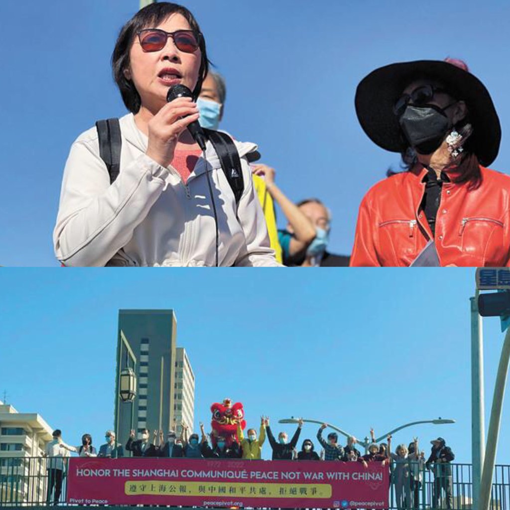 In 1972, the United States and China jointly issued the Shanghai Communique, which served as the basis for the establishment of diplomatic relations between the two countries. On the 50th anniversary of the release of the historic document, Pivot to Peace gathered representatives from the Chinese community and various other sectors to mark the release of the Shanghai Communiqué. They put up a bilingual banner on a raised pedestrian bridge Sunday morning, calling for peace between the United States and China and promoting the spirit of anti-war.