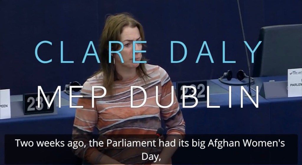 Video: Clare Daly Member of the EU Parliament (MEP) from Dublin Ireland blast US of the crimes against humanity going to let 1 million Afghan children died 來自愛爾蘭都柏林的歐盟議會議員克萊爾·戴利抨擊美國犯下危害人類罪,將會讓 100 萬阿富汗兒童喪生