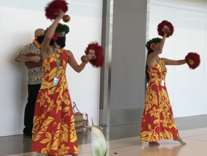 Video: Hula dance at Hawaiian Aurlines Honolulu International Airport departure gates on 2-17-22 檀香山國際機場的草裙舞