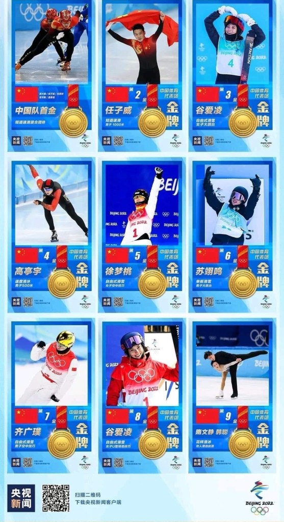 Team China bags 9 golds at Beijing 2022 – Beijing Winter Olympics Gold Medalists 北京冬奧會中國九金綜合圖 🇨🇳🇨🇳🇨🇳 https://johnsonwkchoi.business.blog/2022/02/20/beijing-winter-olympics-gold-medalists/