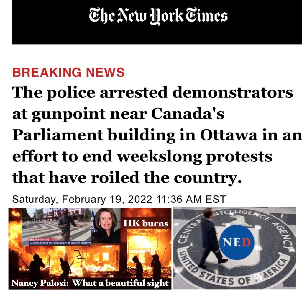 US NED pushed for regime change in Hong Kong in 2019, HK police never draw gun at unarmed non-violent rioters, NYT said rioters were fighting for freedom and democracy. Nancy Palosi said “what a beautiful sight”. Why NYT not supporting freedom & democracy now? 2019年美國民主基金會在香港政權更迭顏色革命時,香港警方從不向手無寸鐵的暴徒開槍,當時《紐約時報》稱暴徒是在為自由和民主而戰。 美國議長帕洛西幸災樂禍地說“多麼美麗的風景景線”為什麼紐約時報現在作180度轉變不支持同樣的民主自由呢?