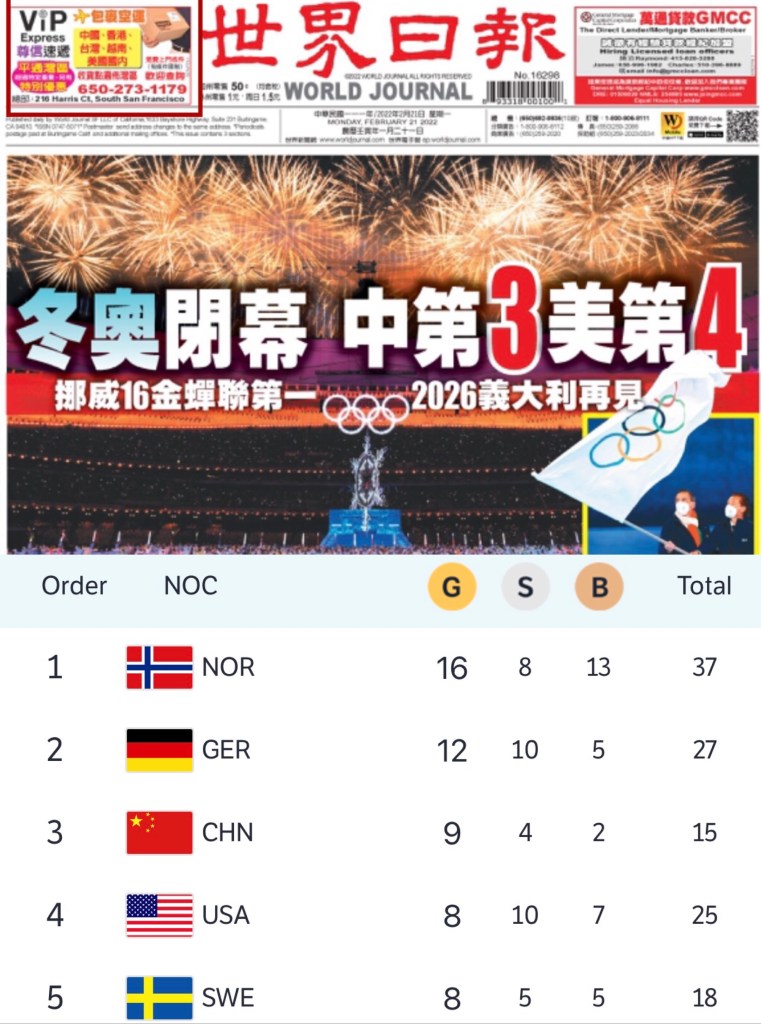 Based on IOC information (don’t used fake news by NYT) China beats US on Olympic Gold Counts 根據國際奧委會信息(不要使用紐約時報的假新聞)中國在奧運金牌數上擊敗美國