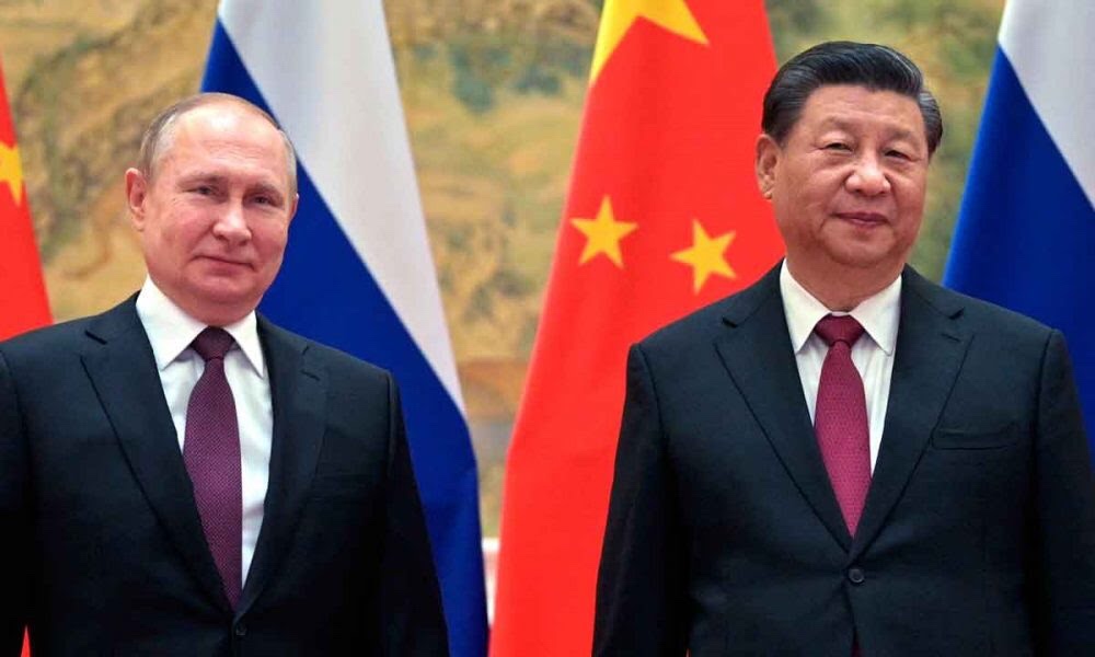 Russian President Vladimir Putin, left, and Chinese President Xi Jinping meet in Beijing on Feb. 4. (Alexei Druzhinin/AFP via Getty Images)