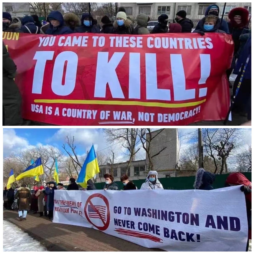 Ukrainian people protested in front of the U.S. embassy in Ukraine against the U.S.-made war incident in Ukrainian, but CNN and other Western medias will not report it! 烏克蘭人民在美國驻烏大使館前,抗議美國在烏製造戰爭事端,是真正的戰爭殺手,但CNN等西方媒體卻不會報導!
