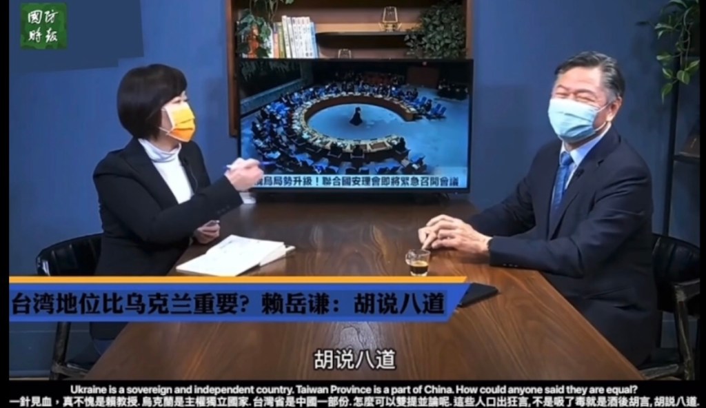 Video: Ukraine is a sovereign and independent country. Taiwan Province is a part of China. How could anyone said they are equal? 一針見血,真不愧是賴教授. 烏克蘭是主權獨立國家. 台灣省是中國一部份. 怎麼可以雙提並論呢. 這些人口出狂言, 不是吸了毒就是酒後胡言, 胡説八道.
