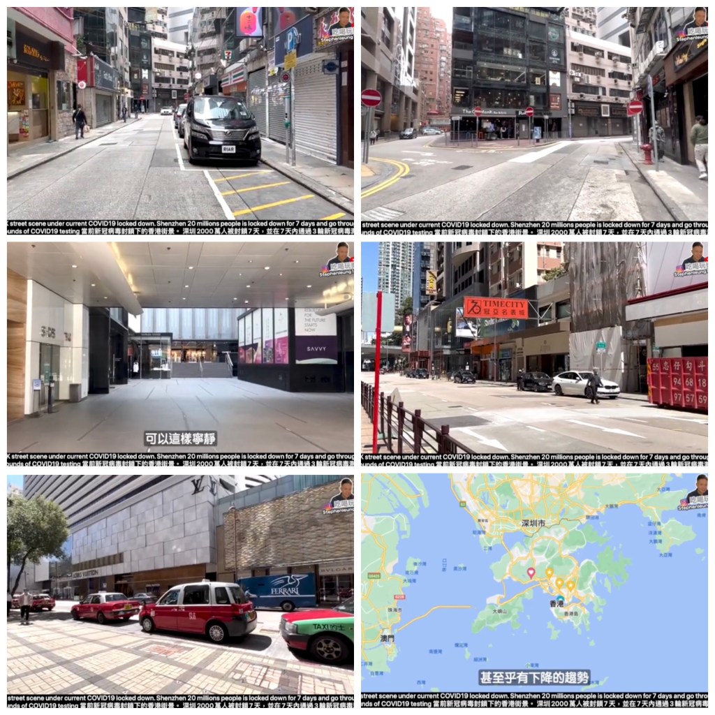 Video: HK street scene under current COVID19 locked down. Shenzhen 20 millions people is locked down for 7 days and go through 3 rounds of COVID19 testing 當前新冠病毒封鎖下的香港街景。 深圳2000萬人被封鎖7天,並在7天內通過3輪新冠病毒測試