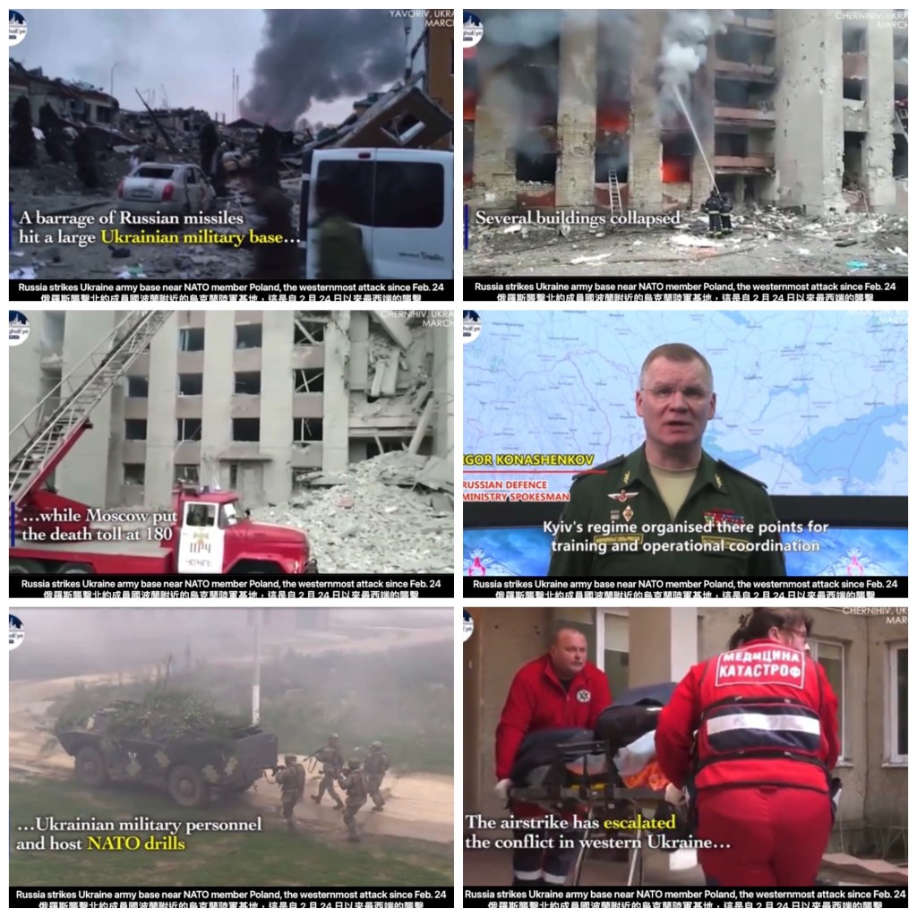 Video: Russia strikes Ukraine army base near NATO member Poland, the westernmost attack since Feb. 24 俄羅斯襲擊北約成員國波蘭附近的烏克蘭陸軍基地,這是自 2 月 24 日以來最西端的襲擊