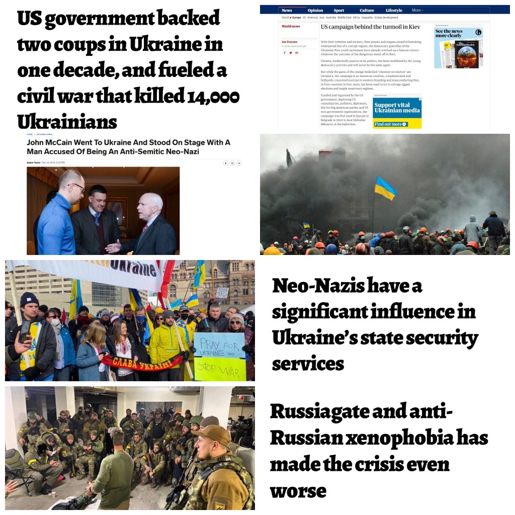 Furthermore, all forces that normally oppose fascism or would oppose the civil war have not existed en masse for eight years in Ukraine: following the 2014 coup, many left-wing parties and socialists got banned by the Ukrainian government, and were assaulted in the streets by the fascists.