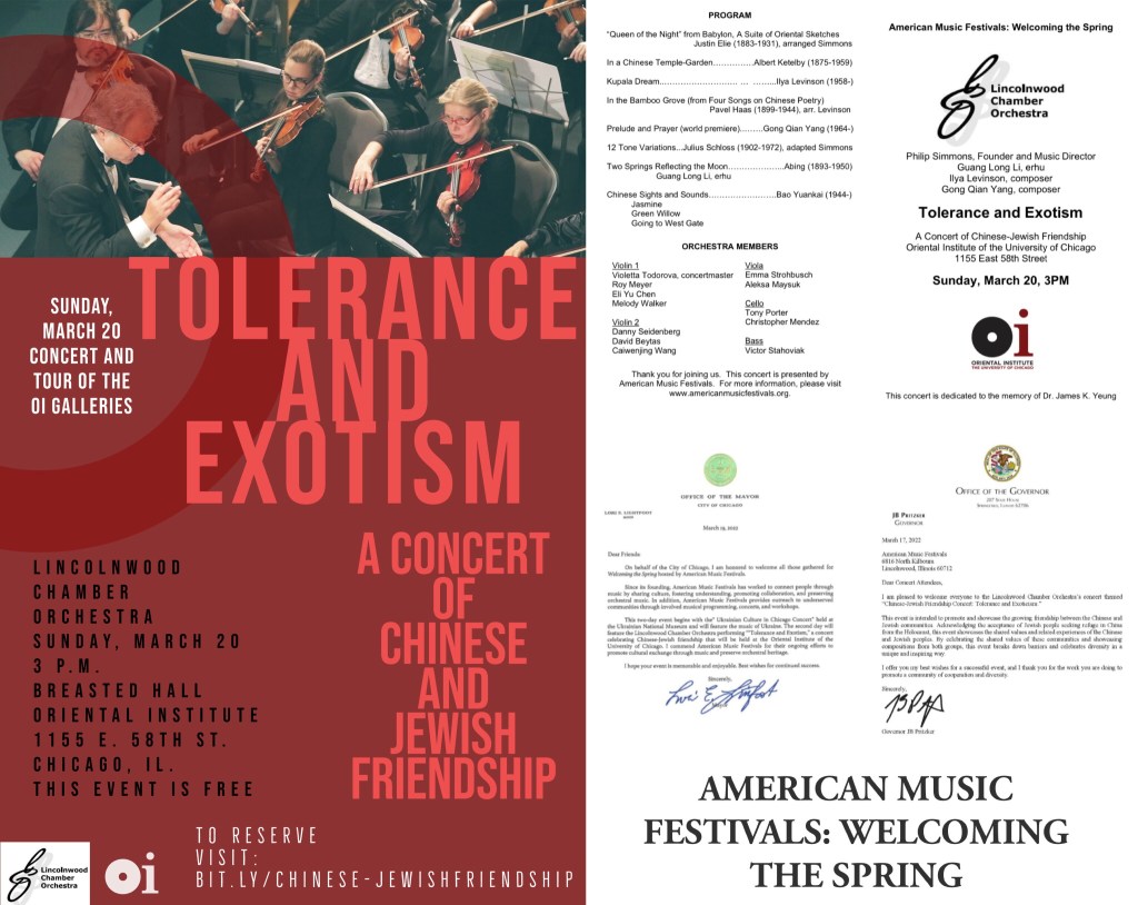Staged by American Music Festivals and the Lincolnwood Chamber Orchestra, “Tolerance and Exotism: A Concert of Jewish and Chinese Friendship” highlighted “the remarkable story of Chinese tolerance for Jews escaping the Holocaust,” said Philip Simmons, founder and artistic director of American Music Festivals.