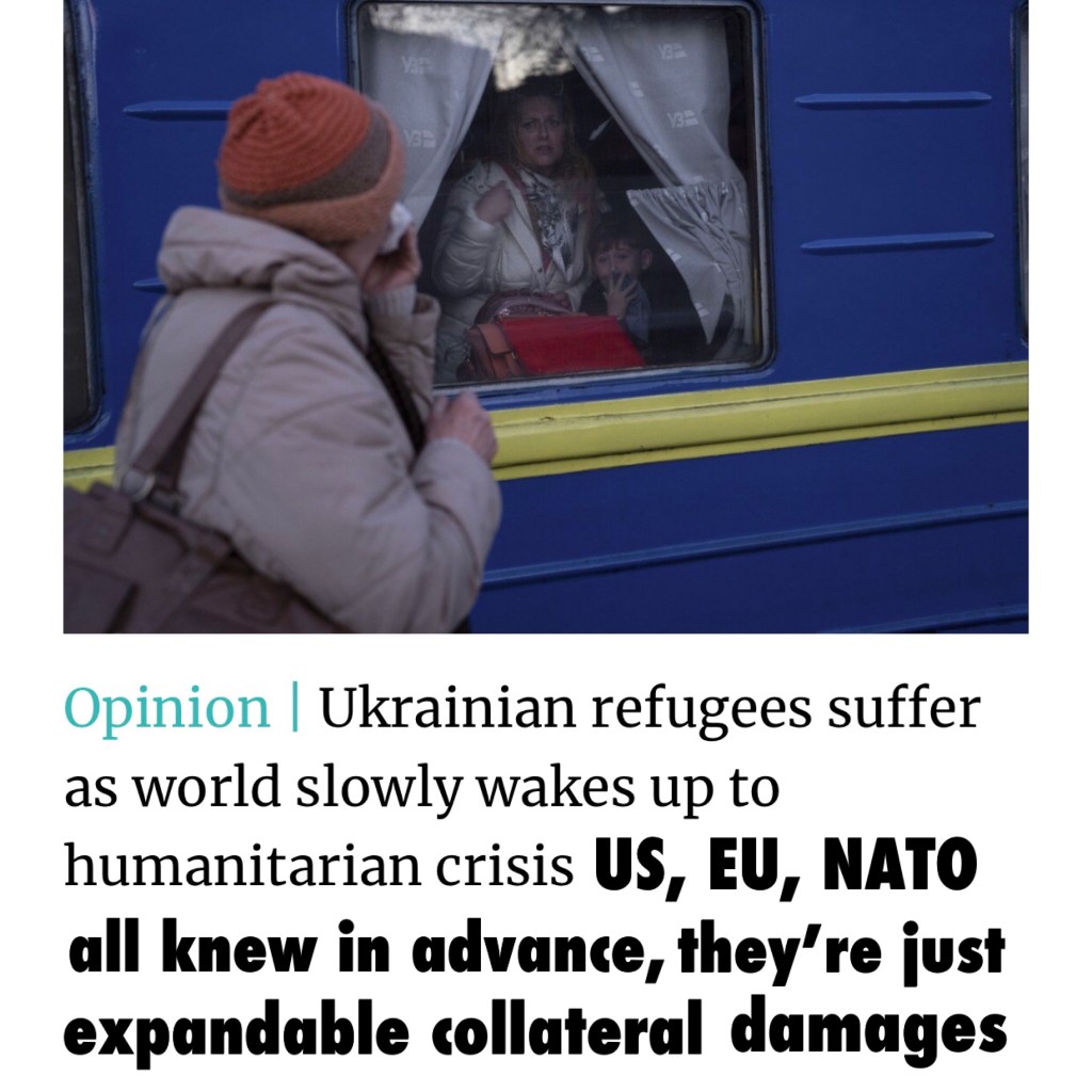 Ukrainian refugees suffer as world slowly wakes up to humanitarian crisis? Really! US, EU and NATO all knew in advance, they’re just expendable collateral damages. 隨著世界慢慢喚醒人道主義危機,烏克蘭難民受苦? 真的! 美國、歐盟和北約都事先知道,那些難民只是可消耗的附帶損害.