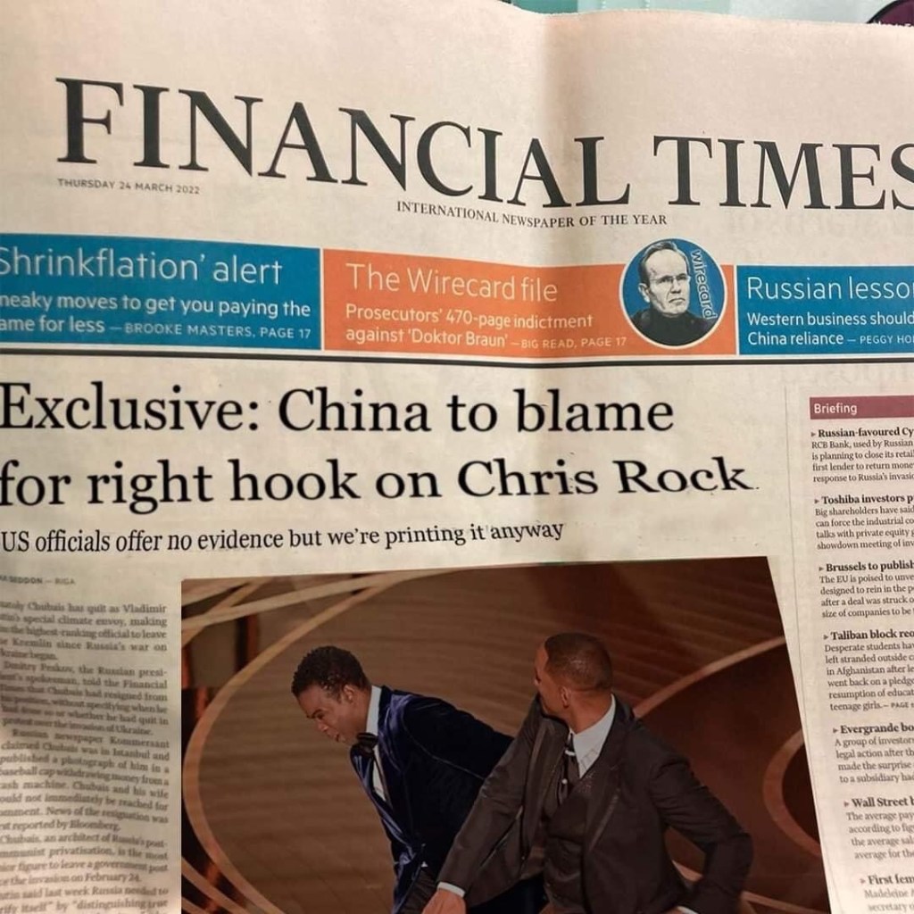 Nury Vittachi: FT writers like to blame China for everything without an iota of evidence so I mocked up a headline to save everybody some time