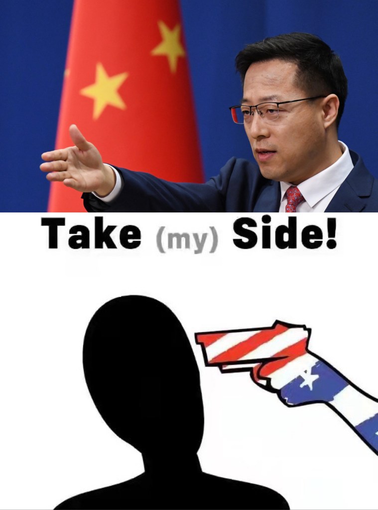 China Foreign Ministry’s spokesperson Zhao Lijian mocks US demand: Beijing posted a cartoon suggesting Washington wants to bulldoze Beijing into taking its side on Ukraine 中國外交部發言人趙立堅嘲諷美國要求:北京發布漫畫暗示華盛頓想推倒北京,讓北京站在烏克蘭一邊