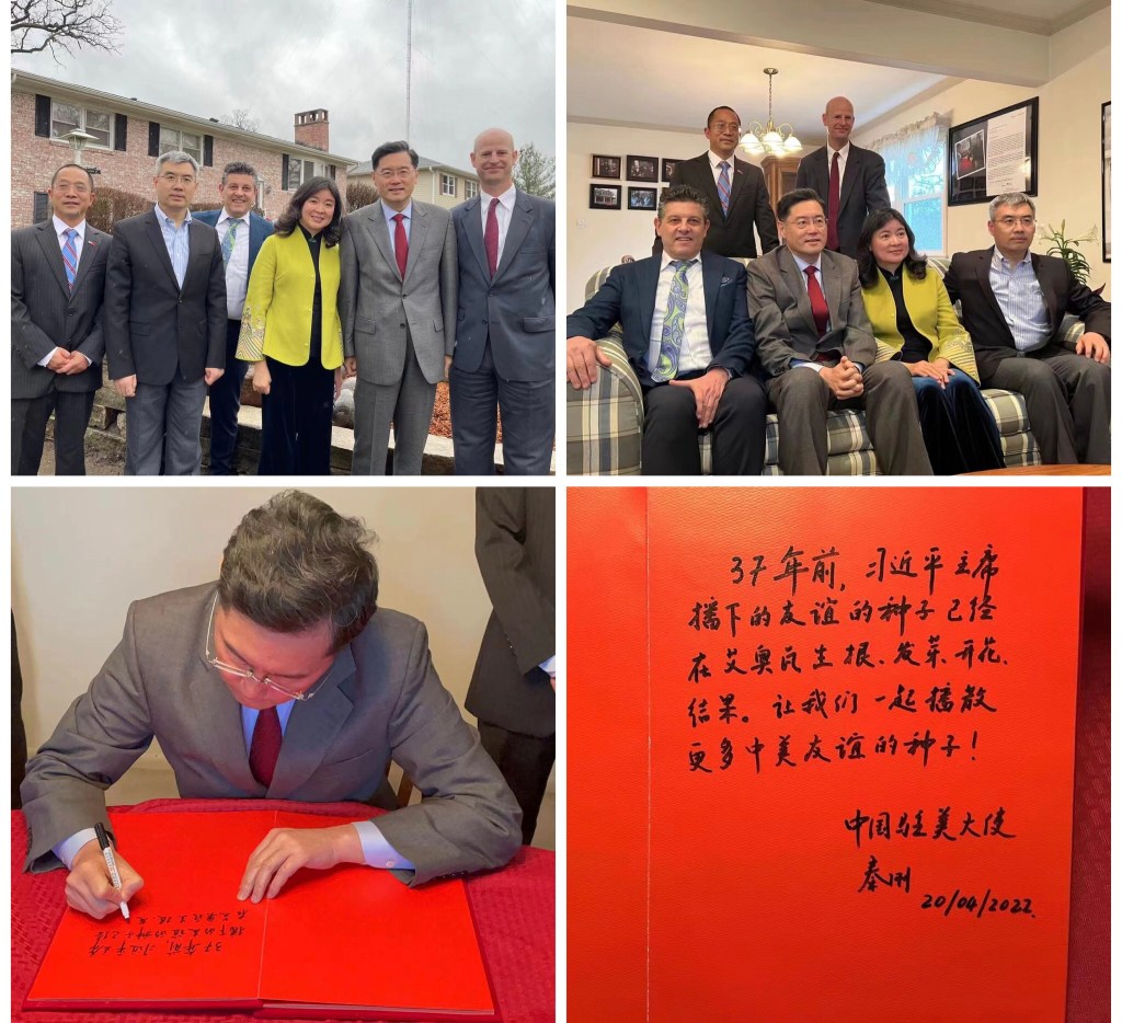 Qin Gang, Chinese Ambassador to the United States, visits Iowa Posted byJohnsonwkchoiApril 21, 2022Posted inUncategorized Qin Gang, Chinese Ambassador to the United States, visits Iowa 中国驻美大使秦刚访问爱荷华州 Share this: Click to share on X (Opens in new window) X Click to share on Facebook (Opens in new window) Facebook Like Loading...