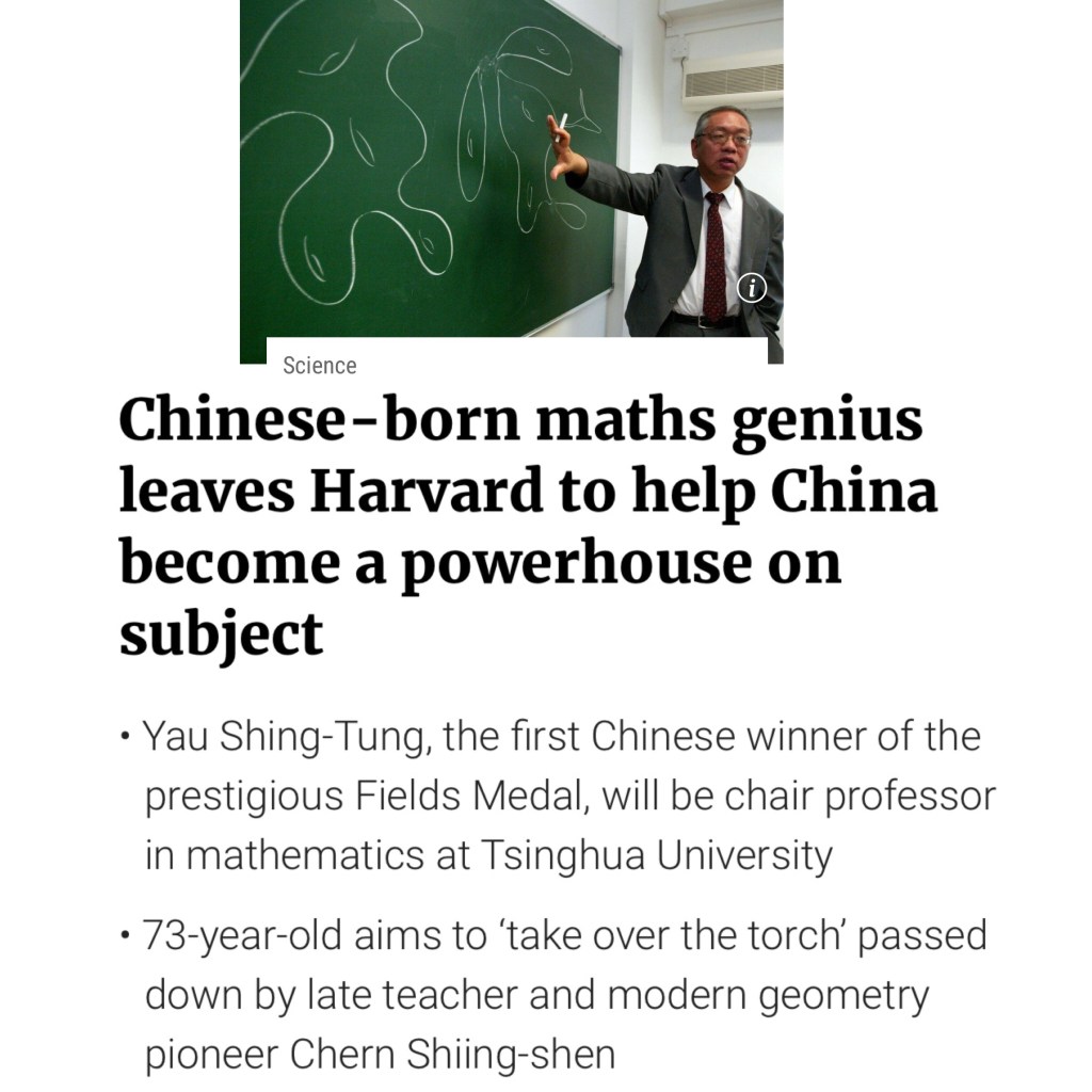 Never too old to help your motherland, his actions is much louder than words! World-renowned Chinese mathematician Yau Shing-Tung has announced his retirement from his position at Harvard University to teach full-time at Tsinghua University in Beijing, aiming to help China become a maths powerhouse within a decade.