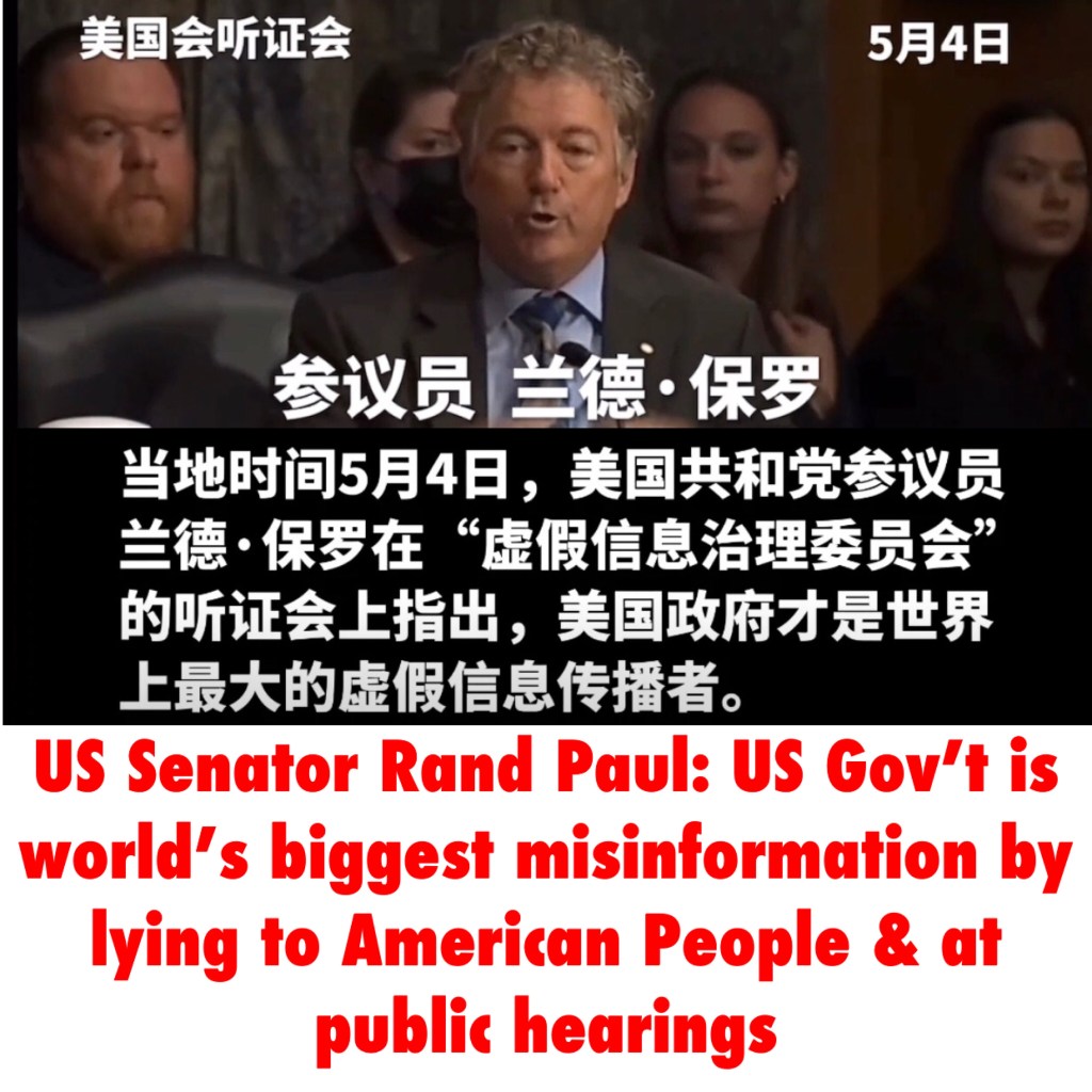 Video: US Senator Rand Paul: US Gov’t is world’s biggest misinformation by lying to American People & at public hearings 美國參議員蘭德保羅:美國政府在公開聽證會上向美國人民撒謊是世界上最大的錯誤信息傳播者