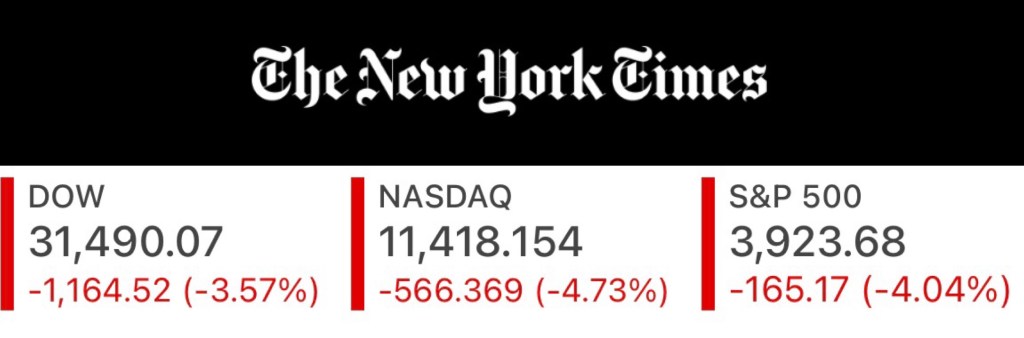 Breaking News: Stocks had their worst day in a series of ugly drops. The S&P 500 fell 4% after retailers’ shrinking profits reignited panic about record high inflation and US proxy war on Russia. The worst has yet to come. 突發新聞:在一系列醜陋的下跌中,股市經歷了最糟糕的一天。 在零售商利潤萎縮再次引發對創紀錄高通脹和美國對俄羅斯的代理人戰爭的恐慌之後,標準普爾 500 指數下跌 4%。 最糟糕的還沒有到來.