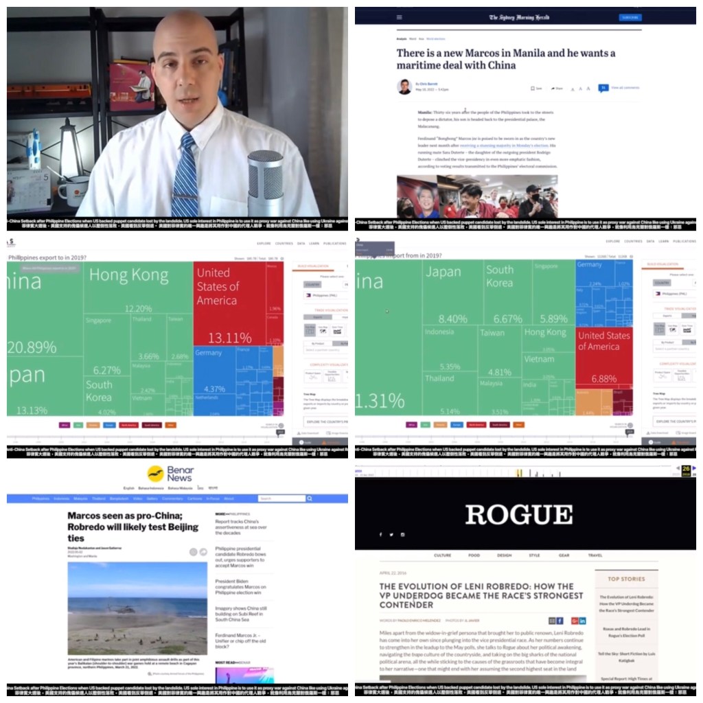Video: US Sees Anti-China Setback after Philippine Elections when US backed puppet candidate lost by the landslide. US sole interest in Philippine is to use it as proxy war against China like using Ukraine against Russia: evil 菲律賓大選後,美國支持的傀儡候選人以壓倒性落敗,美國看到反華倒退。 美國對菲律賓的唯一興趣是將其用作對中國的代理人戰爭,就像利用烏克蘭對俄羅斯一樣:邪惡