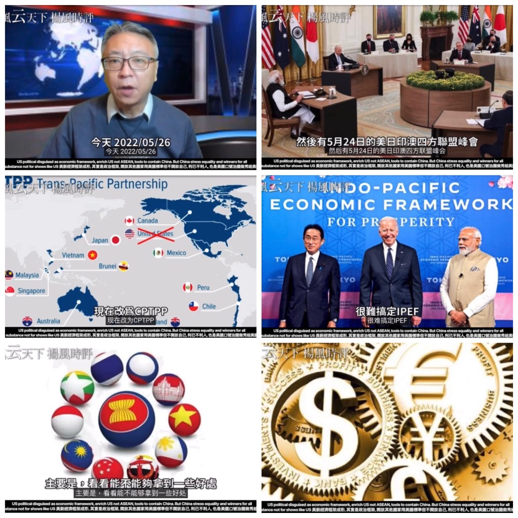 Video: US political disguised as economic framework, enrich US not ASEAN, tools to contain China. But China stress equality and winners for all with substance not for shows like US 美新經濟框架成形, 其實是政治框架, 開放其他國家用美國標準但不開放自己, 利已不利人, 也是美國口號治國做秀給美國人看