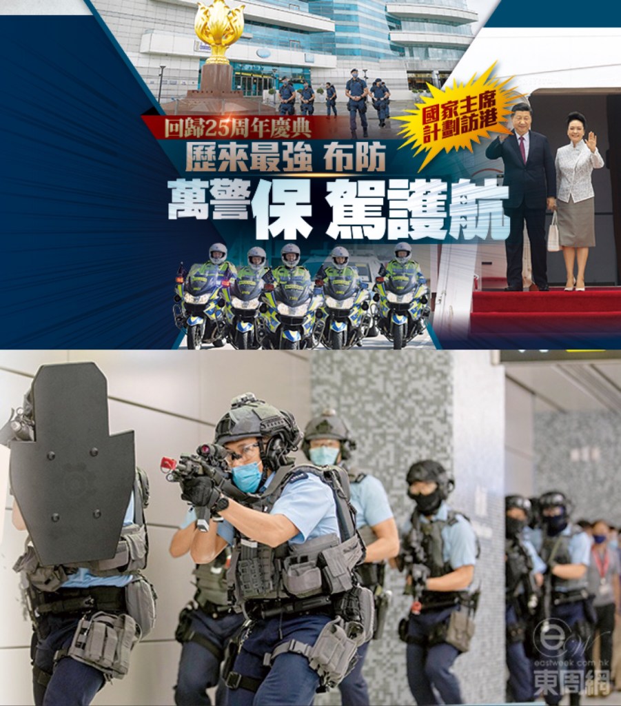 刊獲得消息,早在多個月前,警務處已決定成立一個特別督導委員會,主理香港回歸二十五周年的保安工作,並由副處長(行動)作總指揮。及至最近疫情轉趨穩定,加上接獲最新指令,要以國家主席訪港的最高規格作準備,委員會逐步落實各項安排,重中之重是在飛虎隊、反恐特勤隊、刑事情報科和有組織罪案及三合會調查科等王牌部門配合下,策劃歷來最強的布防,動員逾萬警力保駕護航。