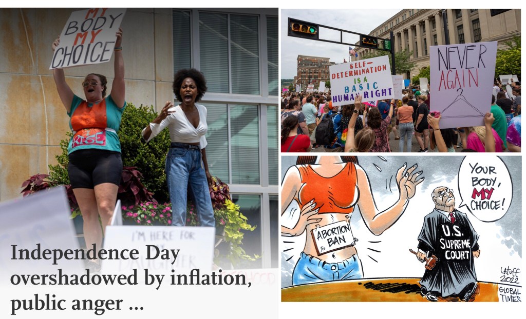 Independence Day overshadowed by inflation, public anger over incompetence of Biden administration and the Supreme Court overturned Roe v. Wade last week – ending a woman’s constitutional right to abortion by Chen Qingqing Jul 03 2022