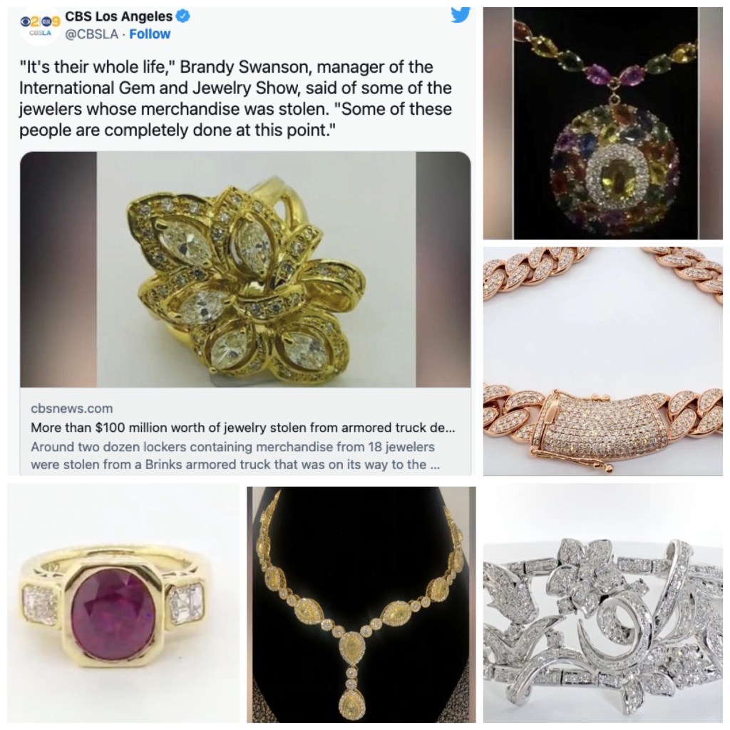 Los Angeles robbery $150 million jewelry for International jewelry exhibit in the armored vehicle was robbed on the way to Pasadena 洛杉矶惊天大劫案 $1.5亿珠宝 国际珠宝展品装甲车前往帕萨迪纳路中遭劫 7-16-22