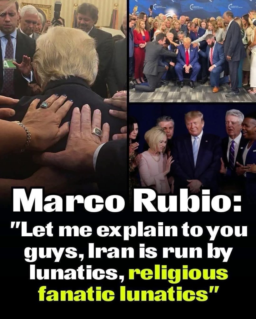 God, not democracy rules this country! “I invade Iran to prove my God bigger than yours” “I am God, House, Senate & Supreme Court stepped aside” 神權而非民主統治著這個國家!「我入侵伊朗是為了證明我的神比你的更偉大」「我就是神,眾議院、參議院及最高法院都得靠邊站」