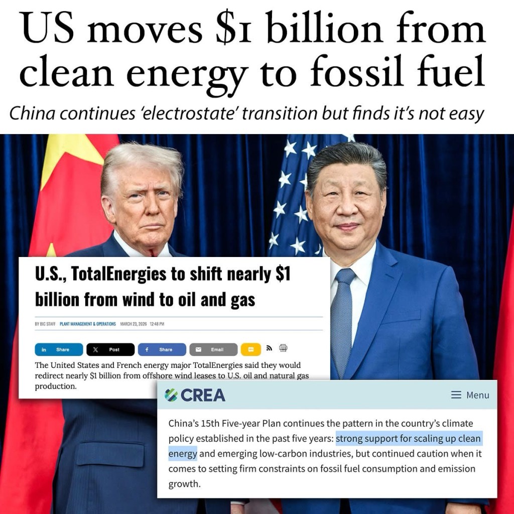 The steps reinforce the two superpowers’ opposite narratives on energy, with the US actively reversing back to fossil fuel usage, while China aims to become a solar civilization “electrostate”.