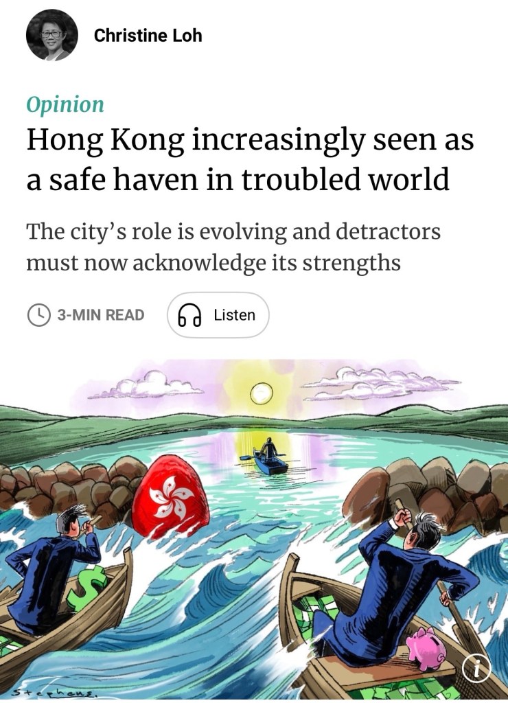 SCMP: When the unthinkable becomes normal, stability becomes the new premium – and Hong Kong is well positioned. The world we thought we understood even two years ago no longer exists. We are living through a period of disruption that, until recently, would have seemed unthinkable. 當難以想像的事情成為常態,穩定便成為新的紅利——而香港正處於有利位置。我們兩年前自認還能理解的世界已不復存在。我們正經歷一段動盪時期,而直到不久之前,這種動盪還看似難以想像.