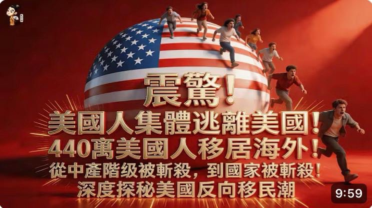 Video with Chinese/English subtitles: Shock! Americans Are Fleeing the U.S. in Droves, 4.4 Million Have Moved Abroad! From the Downfall of the Middle Class to the Decline of a Nation. An In-Depth Look at America’s Reverse Migration Wave. 影片有中英文字幕:震驚!美國人集體逃離美國!440萬美國人移居海外!從中產階級被斬殺,到國家被斬殺! 深度探秘美國反向移民潮來襲!